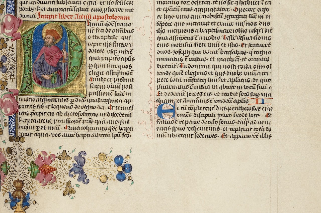 Ms Ludwig I 13 Arenberg Bijbel, Keulen ca 1450 verluchting van 4 initialen op f. 376r, 388r, 395r en 407v door Stefan Lochner, Keulen, ca 1460