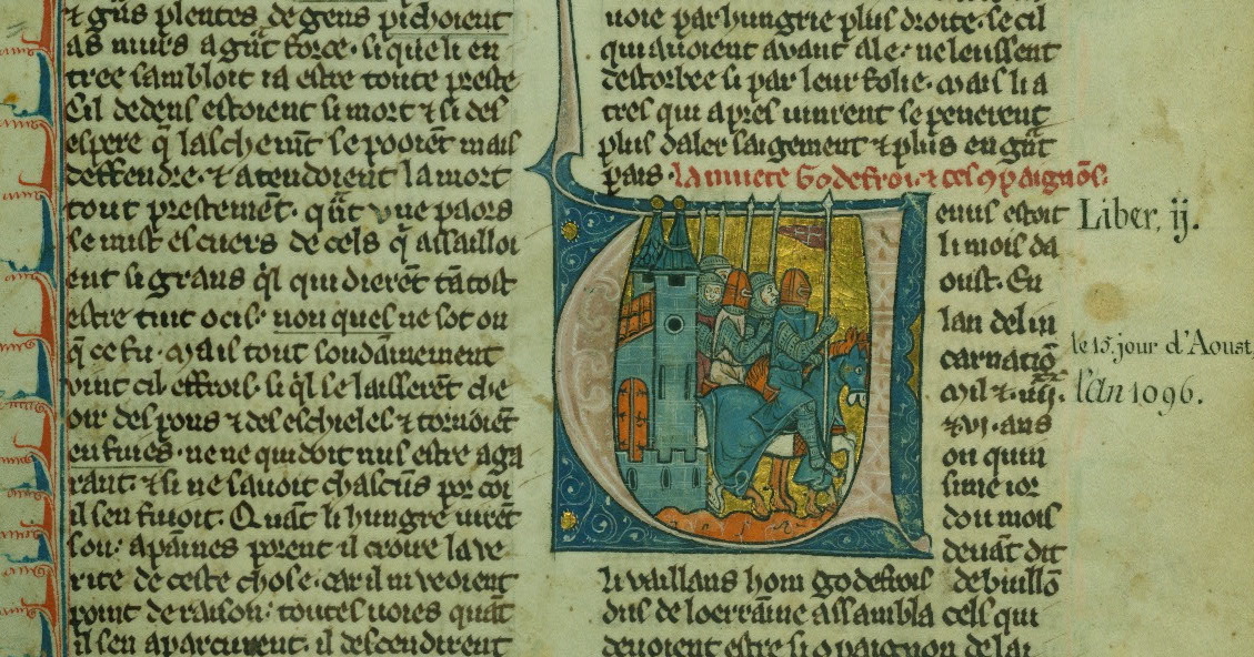 initiaal V – Godefroy de Bouillon en vier ridders – Baltimore, Walters Art Gallery W 137 15R (detail) door anoniem Frans verluchter