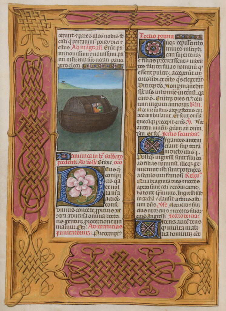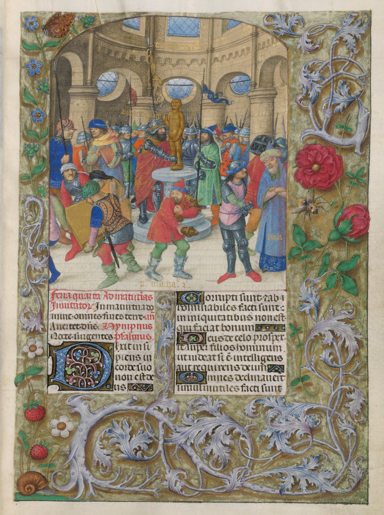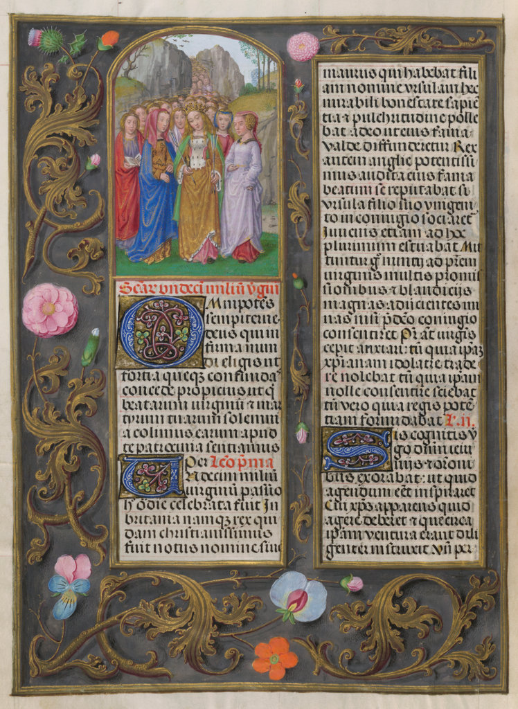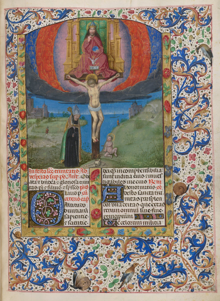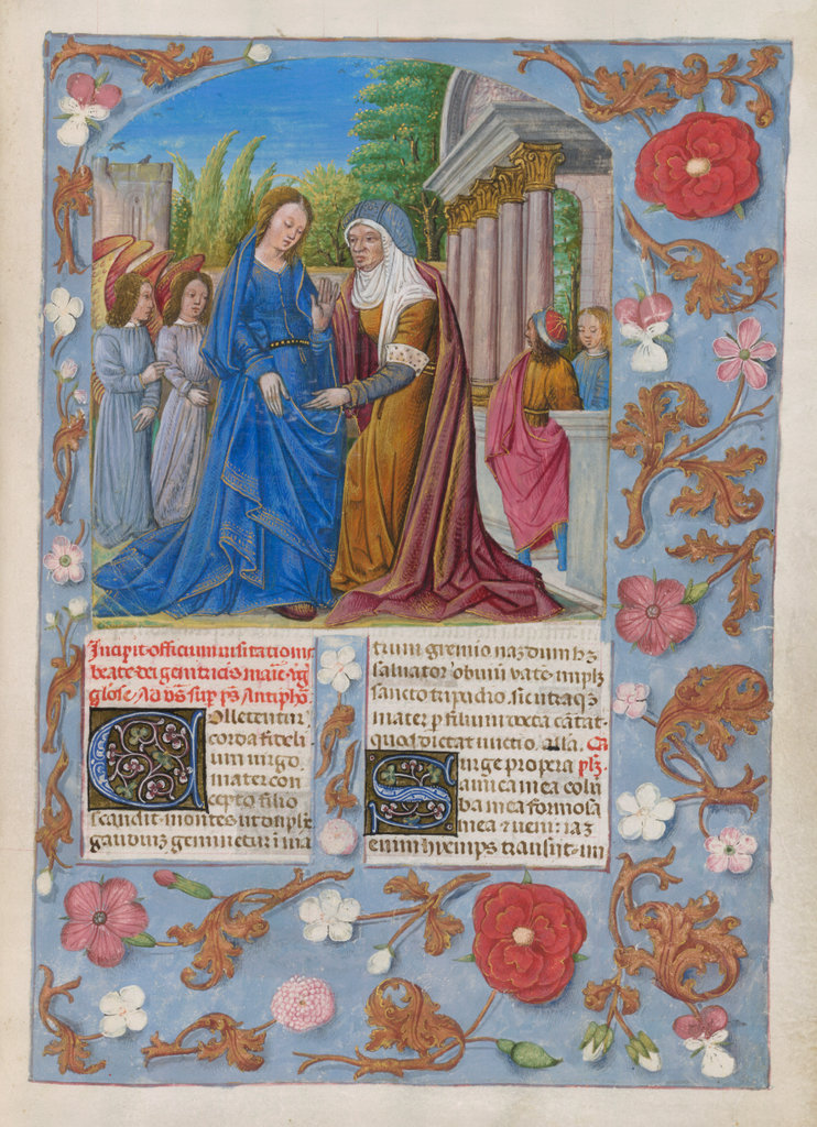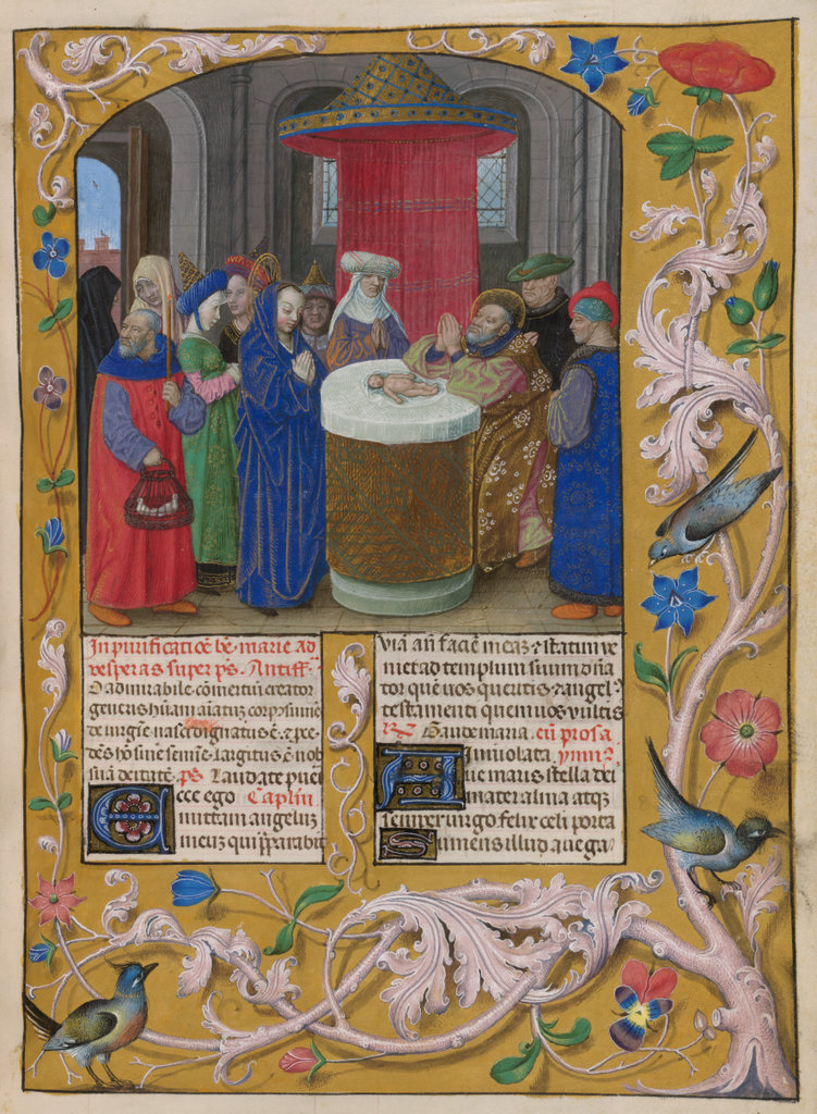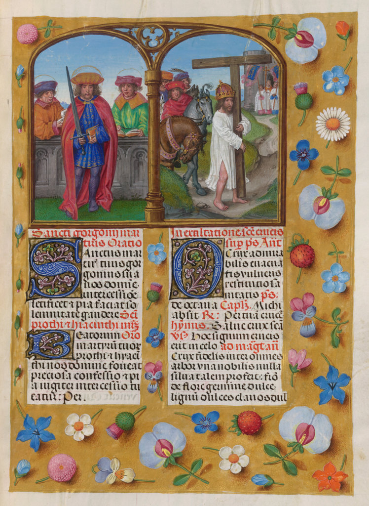 verluchting door Gerard David: f. 29r: geboorte van Christus, f. 41r: aanbidding door de wijzen, f. 297r: St. Barbara; de Meester van het Dresdense Gebedenboek; de Meester van Jacobus IV van Schotland; de Meester van Johannes op Patmos van het Breviarium van Isabella van Castilië; de Meester van de Kalender van het Breviarium van Isabella van Castilië