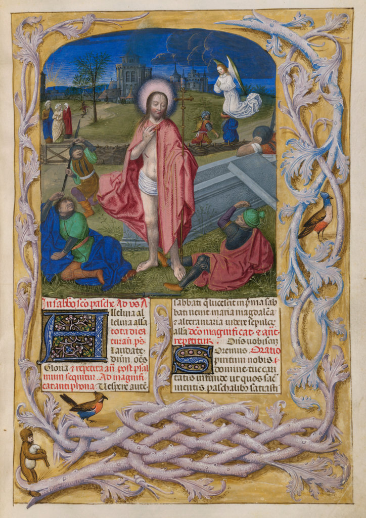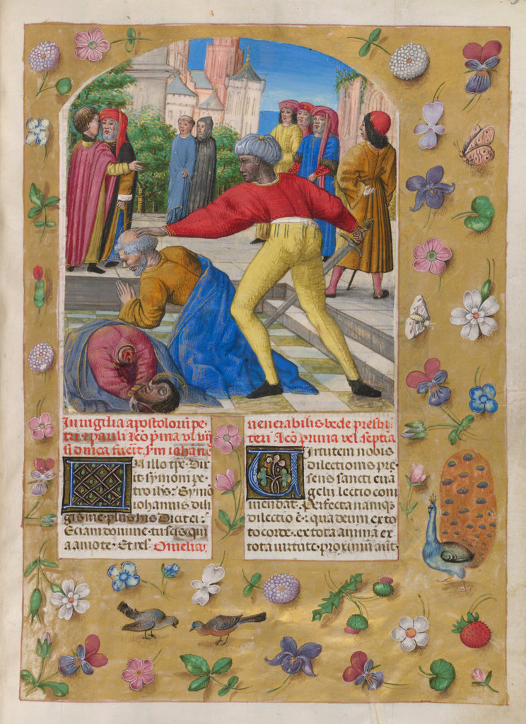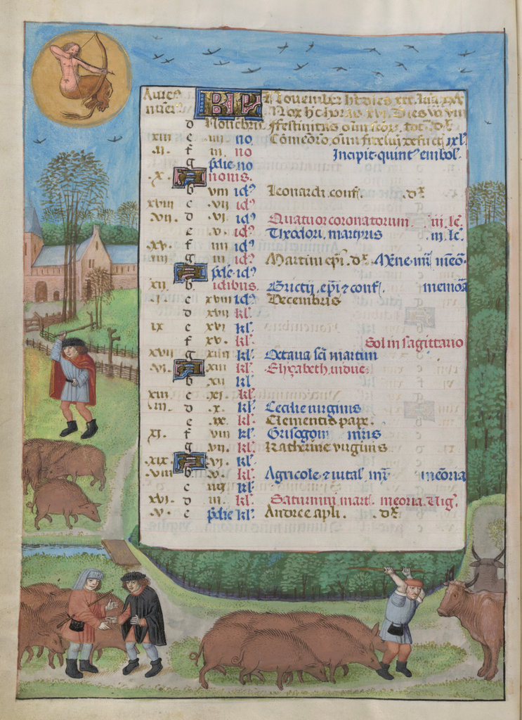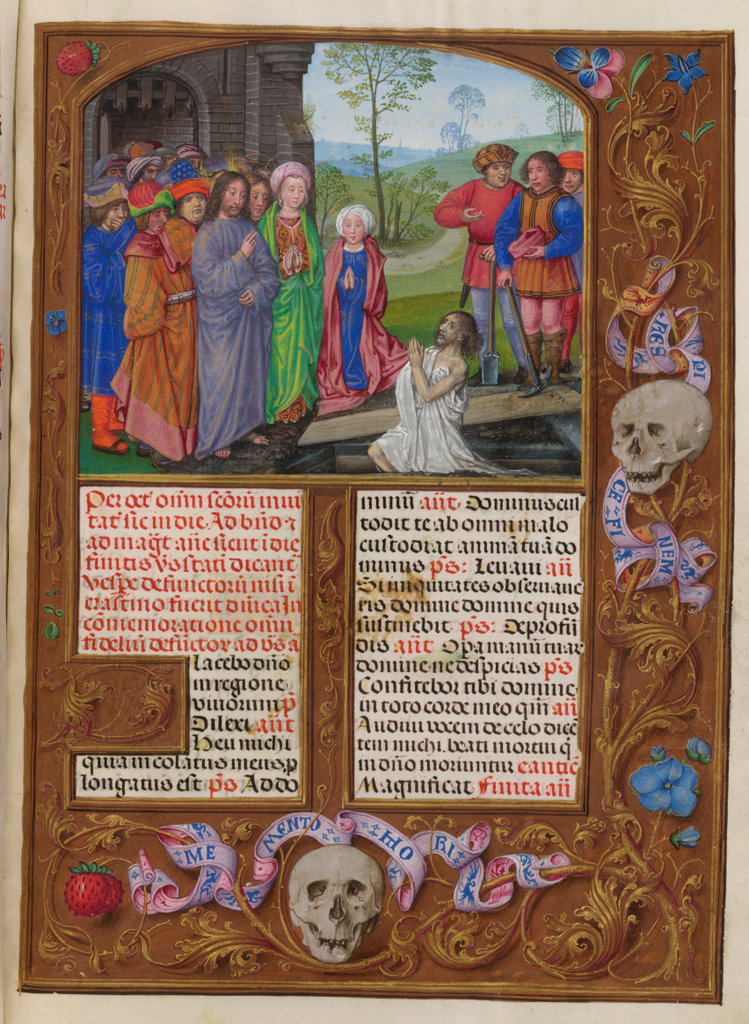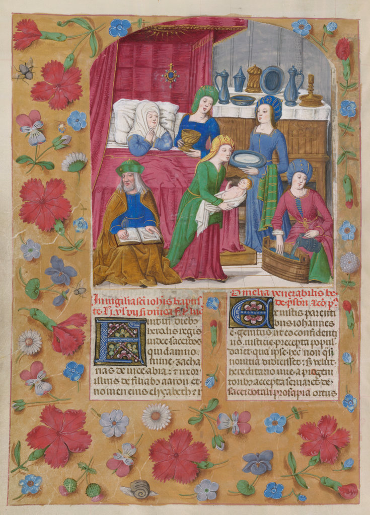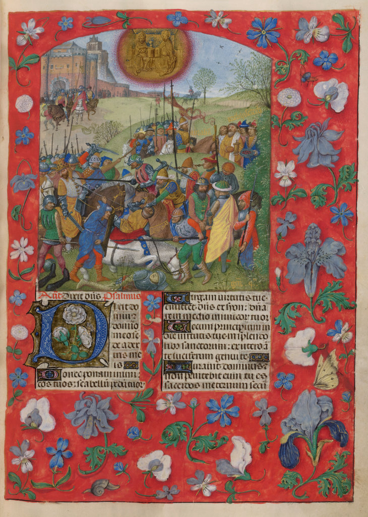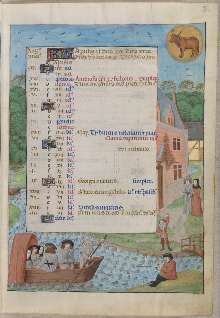 verluchting door Gerard David: f. 29r: geboorte van Christus, f. 41r: aanbidding door de wijzen, f. 297r: St. Barbara; de Meester van het Dresdense Gebedenboek; de Meester van Jacobus IV van Schotland; de Meester van Johannes op Patmos van het Breviarium van Isabella van Castilië; de Meester van de Kalender van het Breviarium van Isabella van Castilië